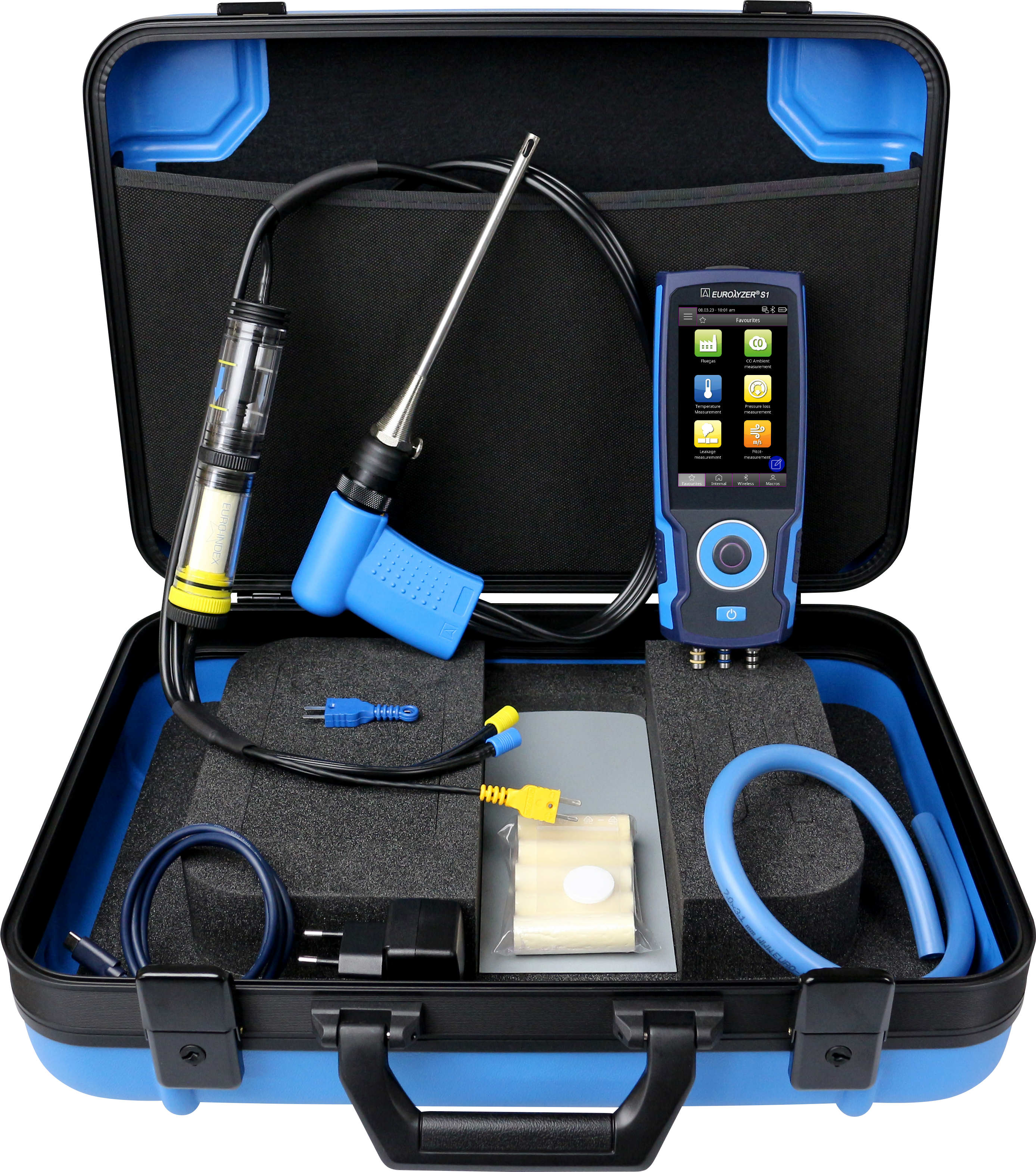 The EUROLYZER® S1 Starter Set perform accurate measurements of O2, CO/H2, temperatures, pressure (draft) as well as precise calculation of various parameters such as lambda, combustion efficiency (Eta), flue gas loss (qA), dew point and CO2.
